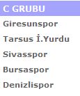 C GrubuSivasspor-Bursaspor-Denizlispor-Giresunspor-Tarsus İdman Yurdu