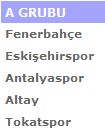 A Grubu; Fenerbahçe-Eskişehir-Antalyaspor-Altay-Tokatspor