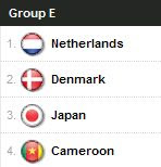 E GrubuHollanda-Danimarka-Japonya-Kamerun