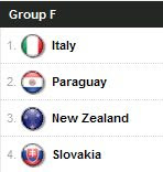 F Grubuİtalya-Paraguay-Yeni Zelanda-Slovakya