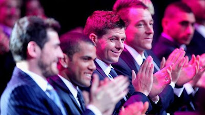 Ayrıca yılın 11'i ödülleri de verildi. Zaten hemen hemen herkesin kafasında bir takım belirmişti. Benim takımım biraz daha duygusal olmuştu itiraf etmek gerekirse. Bu takım Burak'ın takımına daha yakın. Yılın en iyi 11'i şu isimlerden oluştu; Casillas (Real Madrid), Terry (Chelsea), Vidic (Manchester United), Dani Alves (Barcelona), Evra (Manchester United), Xavi (Barcelona), Iniesta (Barcelona), Gerrard (Liverpool), Messi (Barcelona), Ronaldo (Real Madrid), Torres (Liverpool). Zlatan ve Puyol da yakışırdı bu ilk onbire. Fakat Puyol geçtiğimiz senenin bir kısmını sakat geçirdiği için, Zlatan da geçtiğimiz seneyi Inter'de geçirdiği ve çok ön plana çıkamadığı için iki önemli ismi bu kadroda göremiyoruz. Bu ilk onbir olayını Fifa'nın sitesine gönderilen oylarla oluştuğunu biliyoruz. Xavi-Iniesta-Messi üçlüsü bozulmamış orta sahada. İleri uçta ise Ronaldo tabii ki listede. Torres ise 2009'un bilhassa ilk yarısına El Nino olarak damgasını vurmuştu. Casillas zaten benim en sevdiğim ve en başarılı bulduğum kaleci. Evra ve Vidic'e de takımlarından ötürü bir sempati duyuyorum. Dani Alves, Terry ve Gerrard da kadroya giren 3 isim olmuş. Şu onbire bakınca gerçekten rüya takımı görüyoruz. Yıldızlarla örülü bir takım olmuş, galaksi misali..Öte yandan yılın en güzel golüne verilen Fifa Puskas Ödülü de sahibini buldu. Ödülün bu seneki sahibi, Manchester United forması altında, Porto'ya attığı gol ile Cristiano Ronaldo oldu. Porto'ya atılan bu gol ile Manchester United tur atlamış ve finalde Barcelona'nın rakibi olmaya kadar uzanmıştı hatırlarsınız. O golü yukarıdaki videodan izleyebilirsiniz.