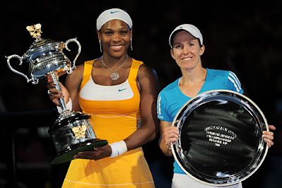 Nefesleri kesen Avustralya Açık'ın ilk finali bugün sabah saatlerinde klasmanın bir numarası Serena Williams ile tenise yeniden dönüş yaparak taraftarlarını mutlu eden ve döndüğü günden beri çok başarılı bir grafik çizen Justine Henin arasında oynandı. Kendi kulvarlarından finale yükselen iki raket için çok zorlu bir maç yaşamadıklarını söylersek sanıyorum yanılmayız. İki raket arasında geçen müthiş mücadelenin ardından Serena Williams 2 saat 7 dakika süren mücadeleyi 6-4, 3-6 ve 6-2'lik setlerle kazanarak sezonun ilk Grand Slam'inde şampiyonluk ipini göğüsleyen taraf oldu. 2003, 2006, 2007 ve 2008 yıllarında Avustralya Açık'ı kazanan Serena, bu seneki turnuvayı da kazanarak hem Avustralya Açık'ı 5 kez kazanan ilk raket oldu, hem de üstüste kazandığı 3 Avustralya Açık ile adını tarihe yazdırdı. Serena, elde ettiği bu şampiyonlukla aynı zamanda, Birleşik Amerikalı bir diğer tenis efsanesi Billie Jean King'i de toplam Grand Slam sayısında yakalamış oldu. Bu turnuva Serena'nın 15. finalindeki 12. şampiyonluğu oldu. 2008'deki emekliliğinin ardından geri dönen ve bu sezon 11 maçta mücadele eden Justine Henin {ki bu 11 maçın 7'si Avustralya Açık maçlarıdır} ikinci seti kazanarak maçı bir set daha uzatsa da Serena'nın elinden kurtulamayarak finali ikincilikle bitirdi.