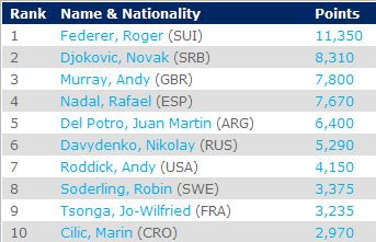 Gelelim erkeklerdeki sıralamaya.. Rafael Nadal geçtiğimiz sene sakatlandığından beri, sıralamadaki durum değişmiyor. Klişe bir tabir var ya, şampiyon belli ikinci kim diye, durum tam manasıyla bu şekilde. Ama Federer'in liderliği ne kadar olağan ve durgun ise, Federer'in alt sıralarında bulunan raketler için de durum bir o kadar hareketli. Şu anda lider Federer evet, ama yeniden sakatlanarak, Avustralya Açık'a veda eden Nadal 2.'likten 4.'lüğe düşerek sevenlerini üzdü. Nadal'ın yerine ise Novak Djokovic geldi. Takip edenler bilir, Djokovic, Avustralya Açık'ta çeyrek finalde Tsonga'ya müthiş bir maç sonunda yenilip turnuvaya veda etmişti. Yine de 3.lükten, 2.liğe yükselme başarısını gösterdi. Avustralya Açık finalistlerinden Andy Murray ise 4. sıradan, 3. sıraya yükselerek kürsüye çıkabilen son isim oldu. Erkeklerde ilk 10'un en çok yükselen ismi ise, 14. sıradan 10. sıraya yükselerek ilk 10'a girebilen Marin Cilic. Avustralya Açık'ta, Federer tarafından yarı finalde elenmişti Hırvat raket. İşte erkeklerde sıralama;