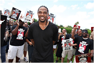 Udonis Haslem' dan başlamak istiyorum bu noktada. Çok daha iyi kontratlar kapabilecekken, 14 Milyon Dolar gibi bir zararla Miami' de kaldı. Yaptığı cidden çok büyük bir fedakarlık. Zaten karakteri tartışılmayacak bir oyuncu. Herkes yatışlardayken Wade ile beraber mücadele veriyordu. Bu mücadeleyi önümüzdeki sezondan itibaren şampiyonluk için verecek. Miami de bu fedekarlığın altında kalmamış ve Haslem' a takıma yeniden katılması adına bir parti düzenlemiş. Fotoğraf da o partiden bir kesit.