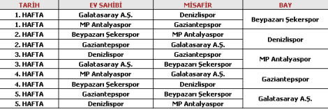 A Grubu: Galatasaray, MP Antalyaspor, Gaziantepspor, Denizlispor, Beypazarı Şekerspor
