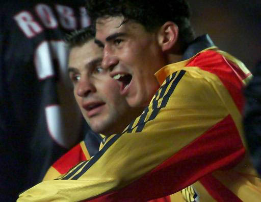Galatasaray - Leeds günlerinden bir kare. Capone'nin Kewell ile mücadelesi. Hatta Leeds'le oynanan ilk maçta da Capone'nin golünün olduğunu unutmayalım.