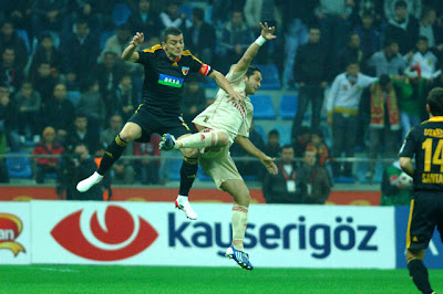 Kayserispor, savunması oldukça güçlü ve mücadelesi de üst düzeyde olan bir ekip. Hücumda ise en güçlü yanları hızlı & teknik kanat oyuncuları. Hagi de bunu görerek Ali Turan tercihinde ısrar etti ve rakibin sol taraftaki direncini kırdı. Hakan Balta'nın ise vasat futboluna karşılık sol tarafta çok da kötü olduğunu düşünmüyorum ve rakibin kanatları bir şekilde durduruldu. Ama adam paylaşımı konusunda yaşanan savunmanın bireysel hataları kalemizde golle sonuçlanabilirdi. Servet Çetin & Neill ikilisi uyumlu bir stoper ikilisi değil ve araya atılan toplarda da çok fazla pozisyon verebiliyoruz. Bugün Zaleyeta yerine daha teknik ve hızlı bir santraforla karşı karşıya gelseydik durum farklı olabilirdi ama Neill'in bu tip fizik gücü yüksek santraforlara karşı sağlam durması bir avantaj. Bu yüzden Manisaspor maçında yapılan hata olan Makukula karşısına Servet Çetin'i koymak yerine Zalayeta, Niang gibi isimlere karşı Neill'i kullanmak çok daha iyi.