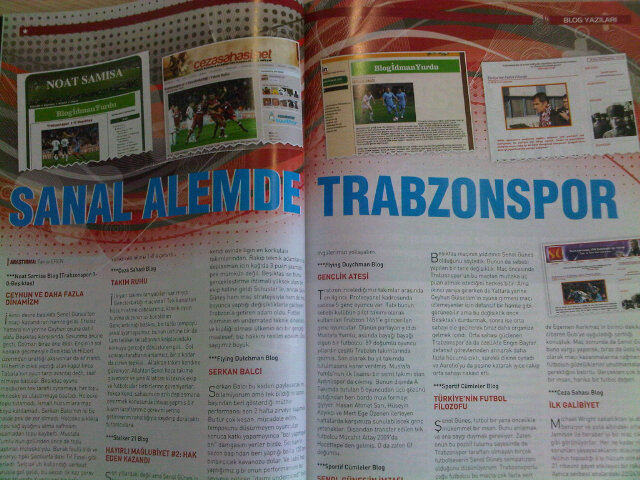Sevgili Tanju Eren sağolsun geçtiğimiz günlerde Trabzonspor Dergisi adına bizim blogdan da bir bölümü aldığını söylediğinde çok mutlu oldum. Galatasaraylı görünmeme ve yazılarda da bu ağırlığın olmasına rağmen sürekli herkese yer vermeyi, haklı olanı alkışlamayı ve en çokta sporu önce spor olduğu için sevdiğimi blogda da yansıtmak istedim. Sanırım doğru yoldayım. Türkiye'nin Futbol Filozofu, Şenol Güneş yazımdan bir bölümü Trabzonspor Dergisinin bu ayki sayısında görmek mümkün, tekrar herkese teşekkürler.