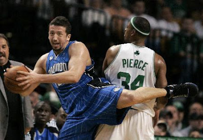 Hidayet'i Orlando'dan koparanlar utansın diye yazıya başlamak lazım aslında. Van Gundy'nin harika bir basketbol resitali sunan sisteminin temel taşı desek yalan olmazdı. Hidayet'in üç numaradaki pasör özellikleri, oyun hakimiyeti derken sistem çok iyi işliyordu. Bugünlerin kanser hücresi R.Lewis bile efsane zamanlar geçiriyordu. Tabii o zamanlar davasa kontratı da kimsenin aklına gelmiyordu. Ama Orlando'lu yöneticiler Hedo'nun yerine Carter'ı getirerek iyi bir iş yaptık zannettiler, takımın sorununun skor anlamında patlama gücü yüksek bir isim olduğunu düşündüler ve yanıldıklarını da 1.5 sezon içerisinde gördük. Nerede NBA finalisti Magic, nerede bu Magic.