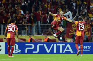 Tekmeye kafa uzatan adam candır. Bu fotoğrafı ilk gördüğümde, o heyecanla hemen Riera demiştim ama fotoğrafta olan isim Hamit Altıntop. Bu arada Uefa tarafından maçın adamı seçildi kendisi ve Şampiyonlar Ligi'nde oynadığımız hemen hemen her maçta Hamit Altıntop imzası var mutlaka.