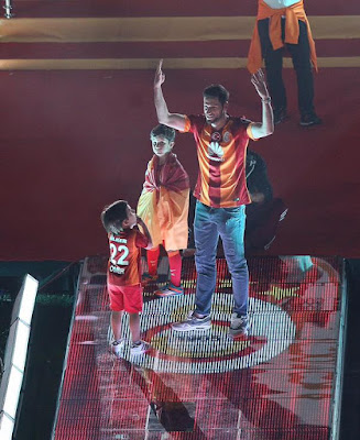 Geceye damgasını vuran isim ise Wesley Sneijder. Tam anlamıyla bir Galatasaray aşığı, neden takımda ısrarla kalmak istediğini bu hareketlerinden de anlayabiliyoruz. Buna tepki gösteren Fenerbahçeli arkadaşlar olabilir ama geçen sezon Mancini üzerinden gönderme yaparken "çok güzel gönderme, güzel hareket" diyen insanlar Sneijder'i bu hareketiyle eleştirenler. Bence kötü değildi, aksine gülümsetti. İlginç nokta ise kimse beklemiyordu, aniden aldı mikrefonu ve söylemeye başladı.