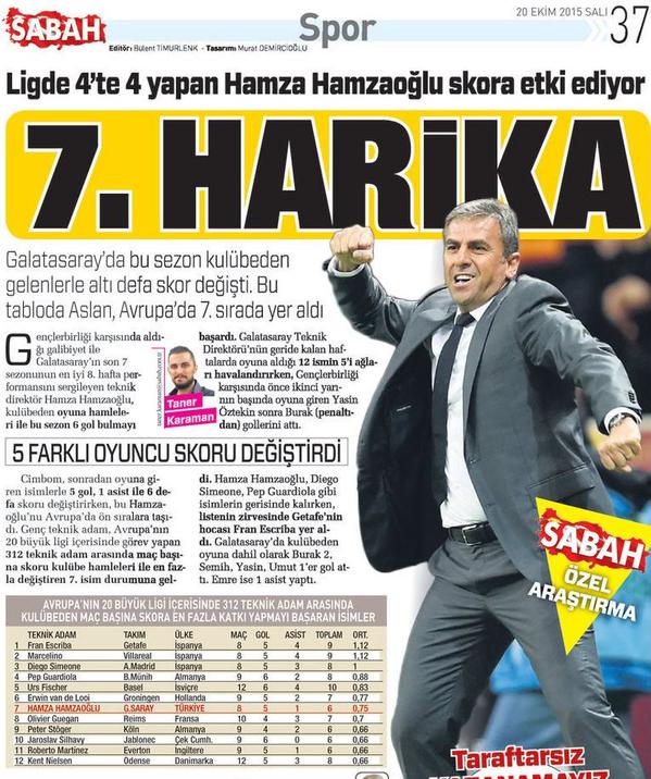Galatasaray'ın kulübe kalitesini eleştiriyoruz, hala da aynı fikirdeyim. Yeterli derinliğe sahip değiliz ama önemli bir istatistik. Nedeni de kulübenin yeterlilik tartışması değil, Hamza Hoca için yapılan oyunu iyi okuyamıyor, doğru değişikliği yapamıyor eleştirileri. Burak Yılmaz'ın bu istatistiğe iki maçta katkısı oldu mesela, onu sonradan oyuna dahil edip fayda sağladığı anlar var. Yasin Öztekin'i de kenardan getirdiği her maç etki sağladı. Eskişehirspor karşısında Bilal Kısa da bu istatistiğe katkı sağladı. Kulübe kalitesini yine eleştiriyorum ama Hamza Hamzaoğlu iyi bir not daha. Oyunu okuma, skoru değiştirme anlamında doğru adımlar atıyor. Sıkıntı oyuna iyi başlayamamak, sürekli 1-0 geriden gelmekti. Geriden gelmenin de bir numaralı silahı Hamza Hamzaoğlu'nun yaptığı değişiklikler, istatistik bunu anlatıyor. Bu anlamda Avrupa'da da 7. sırada kendisine yer bulmuş. Çok konuşulmaz tabii bu, konuşulmayacağı için dile getirmek istedim..