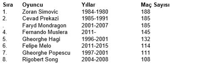 Galatasaray'da en çok forma giyen yabancı futbolcular sıralamasına baktığımızda 145 maçla 4. sırada Muslera var. Hagi'yi geride bırakmış mesela, Hagi'nin 132 maçı var ve 5 sezon Galatasaray formasını giydi. Muslera da 5. sezonunu geçiriyor ve ne kadar daha gider bilmiyorum ama yaşını da düşünerek Galatasaray'da kalması durumunda 1. sıraya yükselmesi de mümkün. 188 maçla Simovic ilk sırada, 185 maçla da Prekazi ve Mondragon onu takip ediyor. Muslera'nın Galatasaray formasını 2 sene daha giymeye devam etse listenin ilk sırasına yerleşir, daha da devam ederse kırılması güç bir rekorun da sahibi olur. Bu istatistik de istikrarın kanıtıdır, Muslera büyük bir kaleci, Galatasaraylılar açısından da çok kıymetli. Simovic, Taffarel, Mondragon gibi istikrar sahibi kalecilerimiz de oldu ama benim için en iyisi Muslera'dır.